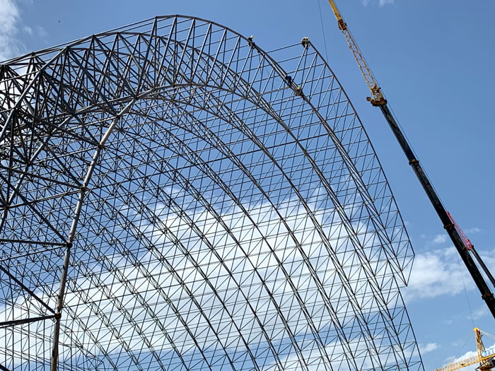 (2)网架加工前应对现场尺寸进行复测,确认无误后方可进行加工、安装;网架制作、运输、安装应遵守《空间网格结构技术规程》JGJ7-2010、《钢网架济宁螺栓球节点》JG/T 10-2009、《钢网架济宁螺栓球节点用高强度螺栓》 GB/T 16939-2016、《济宁钢结构济宁工程济宁施工规范》 GB50755-2012、《济宁钢结构济宁工程施工质量验收标准》 GB50205-2020。